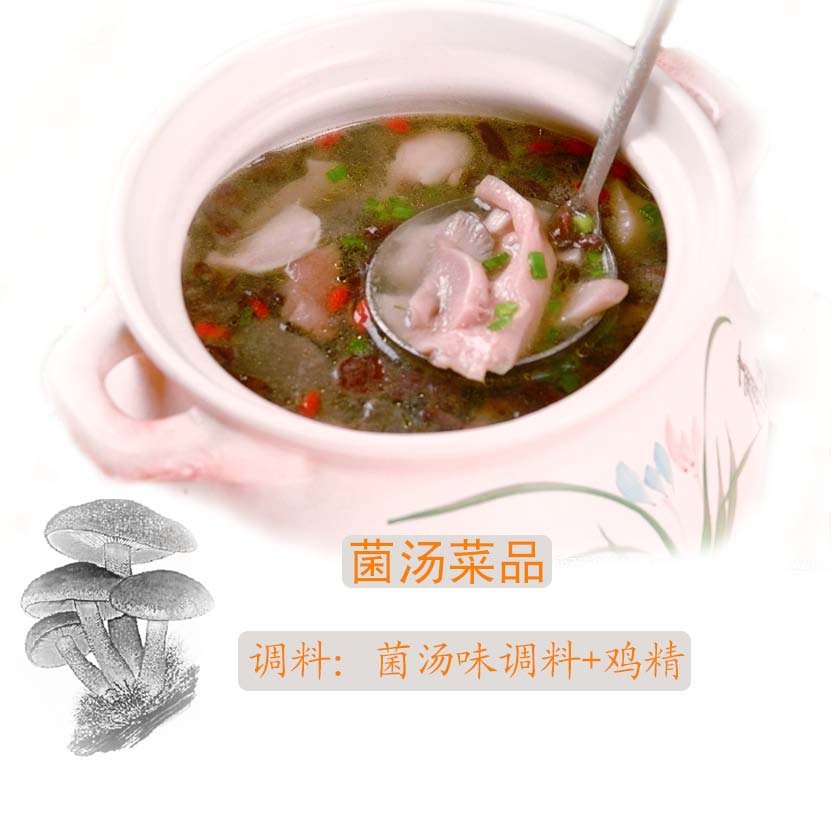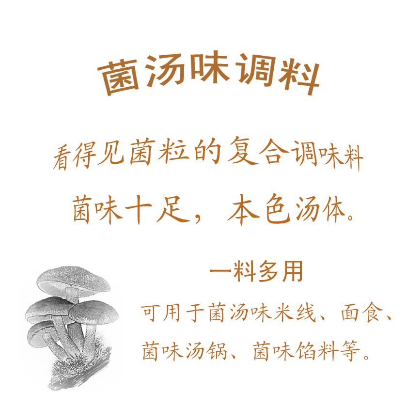 菌湯味調料是公司研發的復合調味料,看得見菌粒,菌味十足,鮮美無比,一料多用,使用方便。